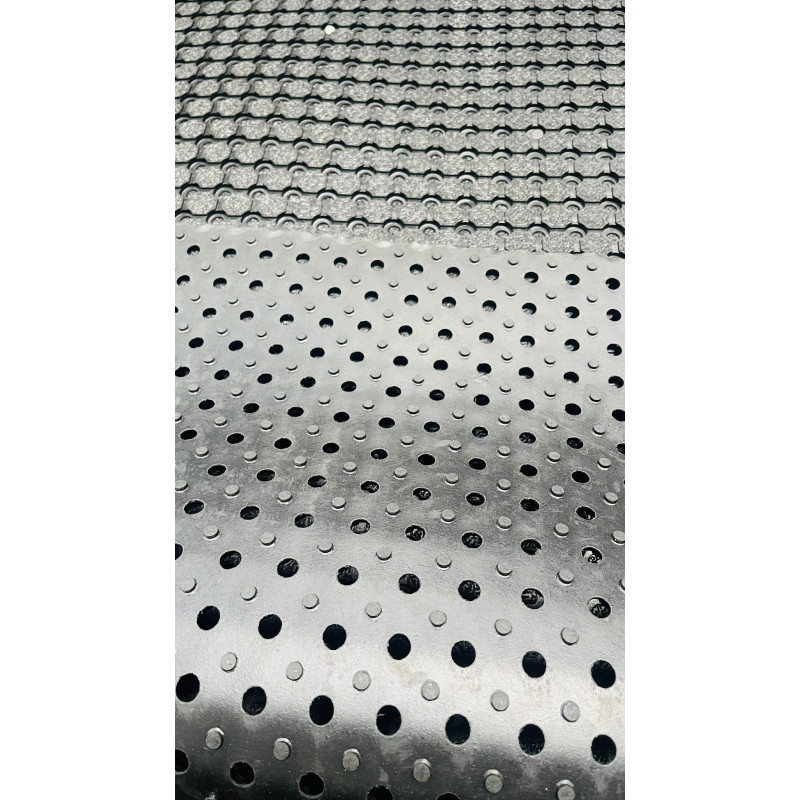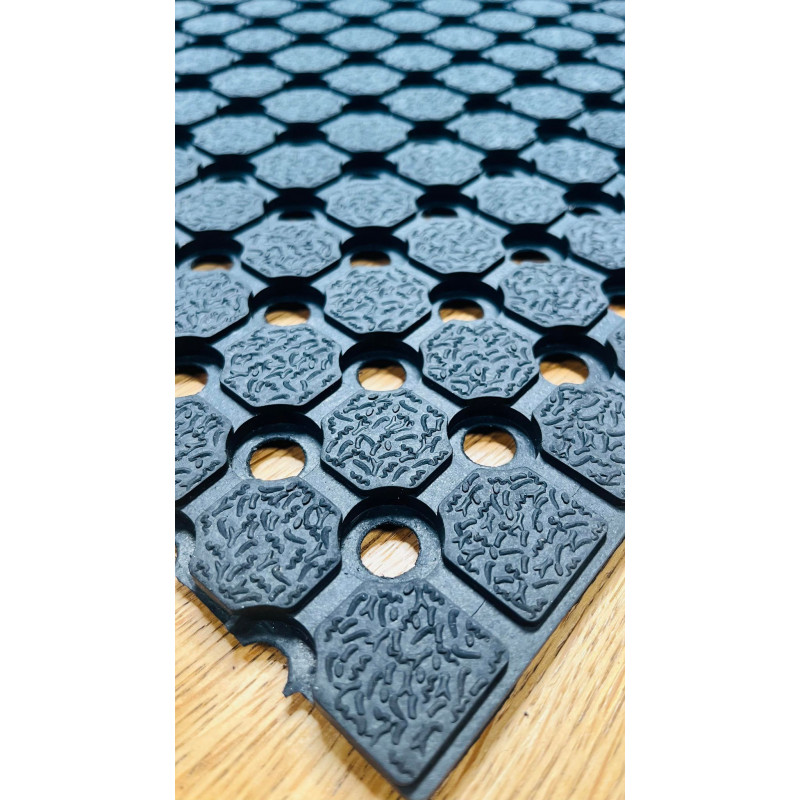 .Drainage mats create a less hazardous surface by allowing liquids and debris to pass through the large holes honeycombed throughout the mats